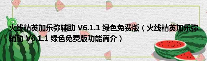 火线精英加乐弥辅助 V6.1.1 绿色免费版(火线精英加乐弥辅助 V6.1.1 绿色免费版功能简介)