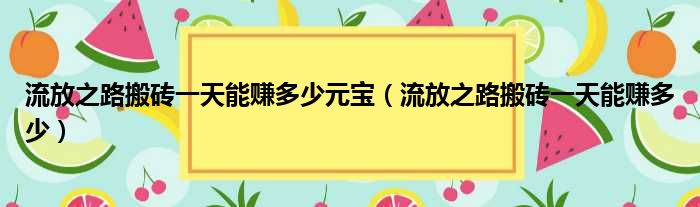 流放之路搬砖一天能赚多少元宝(流放之路搬砖一天能赚多少)