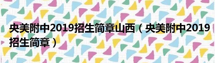 央美附中2019招生简章山西(央美附中2019招生简章)