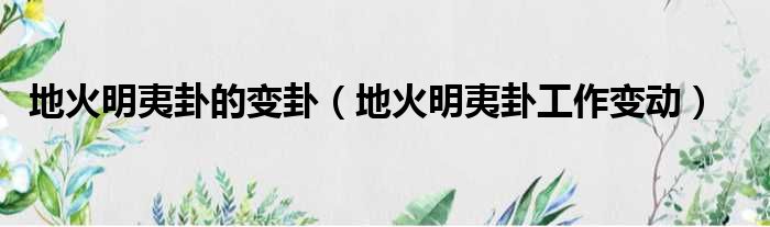 地火明夷卦的变卦(地火明夷卦工作变动)