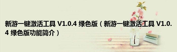 新游一键激活工具 V1.0.4 绿色版(新游一键激活工具 V1.0.4 绿色版功能简介)