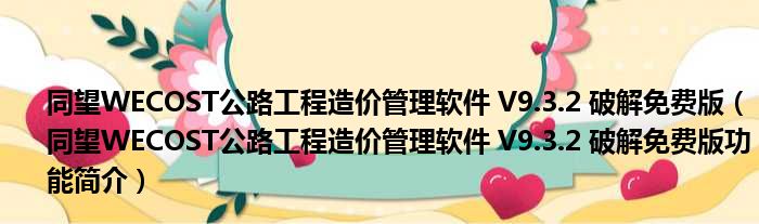 同望WECOST公路工程造价管理软件 V9.3.2 破解免费版(同望WECOST公路工程造价管理软件 V9.3.2 破解免费版功能简介)