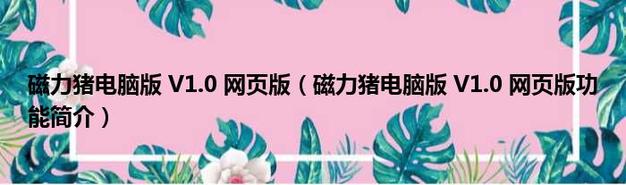 磁力猪电脑版 V1.0 网页版(磁力猪电脑版 V1.0 网页版功能简介)