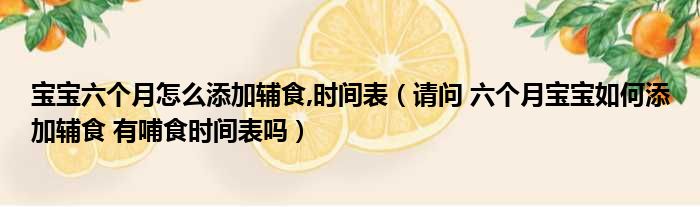 导读 大家好,今天小六子来为大家解答以下的问题,关于宝宝六个月怎么添加辅食,时间表,请问 六个月宝宝如何添加辅食 有哺食时间表吗这个很多人