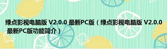 绿点影视电脑版 V2.0.0 最新PC版(绿点影视电脑版 V2.0.0 最新PC版功能简介)