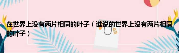 导读 大家好,今天小六子来为大家解答以下的问题,关于在世界上没有两片相同的叶子,谁说的世界上没有两片相同的叶子这个很多人还不知道,现在让