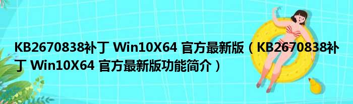 KB2670838补丁 Win10X64 官方最新版(KB2670838补丁 Win10X64 官方最新版功能简介)