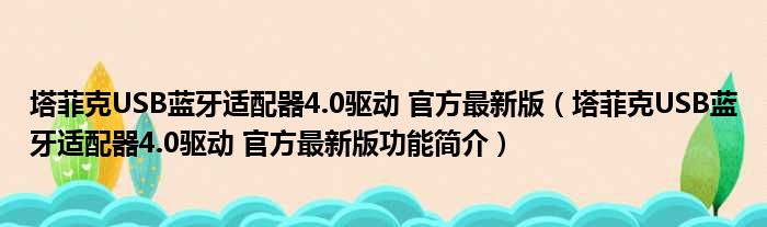 塔菲克USB蓝牙适配器4.0驱动 官方最新版(塔菲克USB蓝牙适配器4.0驱动 官方最新版功能简介)