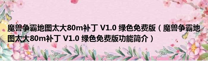 魔兽争霸地图太大80m补丁 V1.0 绿色免费版(魔兽争霸地图太大80m补丁 V1.0 绿色免费版功能简介)