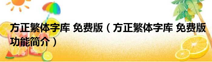 方正繁体字库 免费版(方正繁体字库 免费版功能简介)