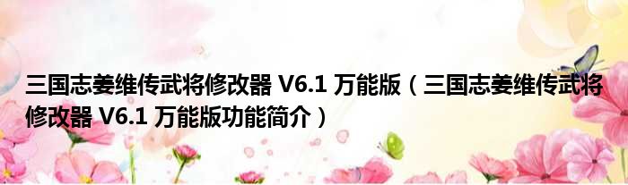 三国志姜维传武将修改器 V6.1 万能版(三国志姜维传武将修改器 V6.1 万能版功能简介)