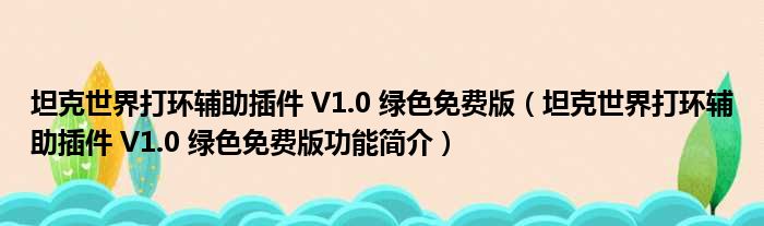 坦克世界打环辅助插件 V1.0 绿色免费版(坦克世界打环辅助插件 V1.0 绿色免费版功能简介)