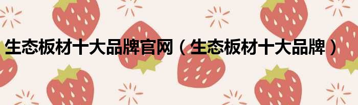 大家好,今天小六子来为大家解答以下的问题,关于生态板材十大品牌官网,生态板材十大品牌这个很多人还不知道,现在让我们一起来看看吧!