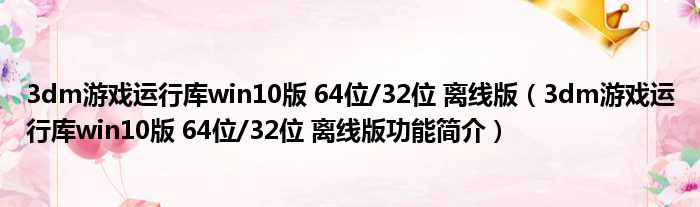 3dm游戏运行库win10版 64位/32位 离线版(3dm游戏运行库win10版 64位/32位 离线版功能简介)