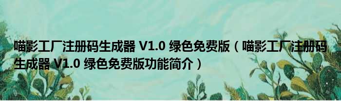 喵影工厂注册码生成器 V1.0 绿色免费版(喵影工厂注册码生成器 V1.0 绿色免费版功能简介)