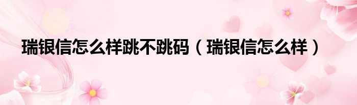 瑞银信怎么样跳不跳码(瑞银信怎么样)
