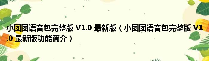 小团团语音包完整版 V1.0 最新版(小团团语音包完整版 V1.0 最新版功能简介)