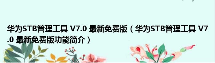 华为STB管理工具 V7.0 最新免费版(华为STB管理工具 V7.0 最新免费版功能简介)