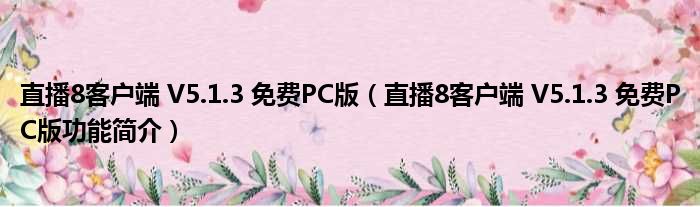 导读 大家好,关于直播8客户端 V5 1 3 免费PC版,直播8客户端 V5 1 3 免费PC版功能简介这个很多人还不知道,小勒来为大家解答以上的问题,现在