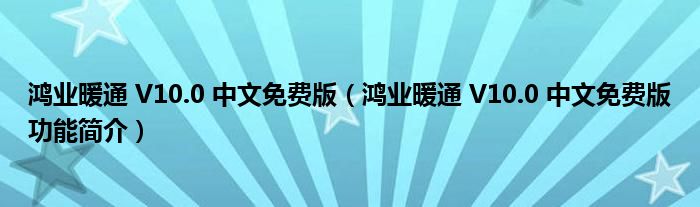 鸿业暖通 V10.0 中文免费版(鸿业暖通 V10.0 中文免费版功能简介)