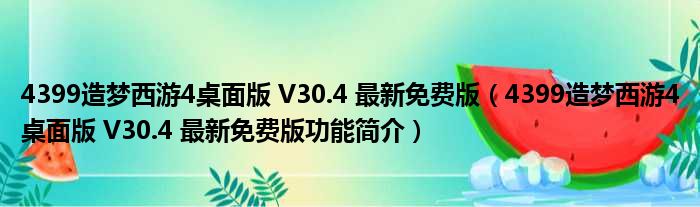 导读 大家好,关于4399造梦西游4桌面版 V30 4 最新免费版,4399造梦西游4桌面版 V30 4 最新免费版功能简介这个很多人还不知道,小勒来为大家解