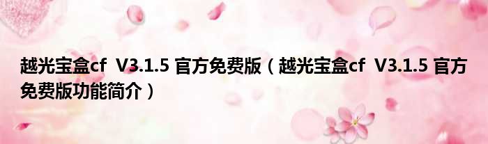 导读 大家好,关于越光宝盒cf V3 1 5 官方免费版,越光宝盒cf V3 1 5 官方免费版功能简介这个很多人还不知道,小勒来为大家解答以上的问题