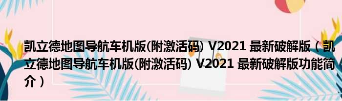 凯立德地图导航车机版(附激活码) V2021 最新破解版(凯立德地图导航车机版(附激活码) V2021 最新破解版功能简介)