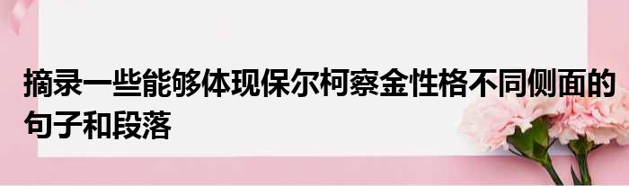 摘录一些能够体现保尔柯察金性格不同侧面的句子和段落
