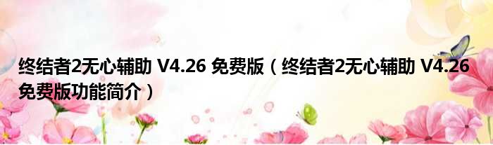 终结者2无心辅助 V4.26 免费版(终结者2无心辅助 V4.26 免费版功能简介)