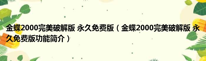 金蝶2000完美破解版 永久免费版(金蝶2000完美破解版 永久免费版功能简介)