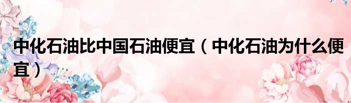 中化石油比中国石油便宜(中化石油为什么便宜)