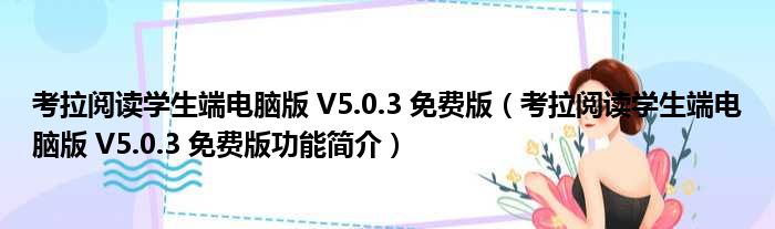 大家好,关于考拉阅读学生端电脑版 V5.0.3 免费版,考拉阅读学生端电脑版 V5.0.3 免费版功能简介这个很多人还不知道,小勒来为大家解答以上的问题,现在让我们一起来看看吧!