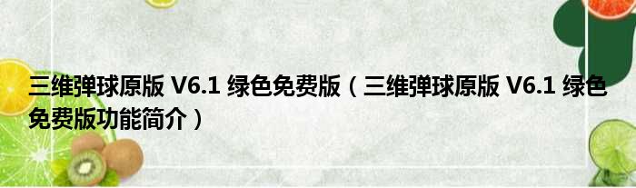 三维弹球原版 V6.1 绿色免费版(三维弹球原版 V6.1 绿色免费版功能简介)