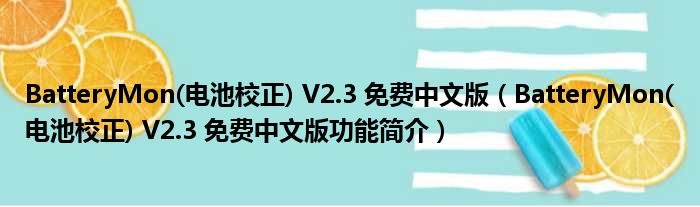 BatteryMon(电池校正) V2.3 免费中文版(BatteryMon(电池校正) V2.3 免费中文版功能简介)