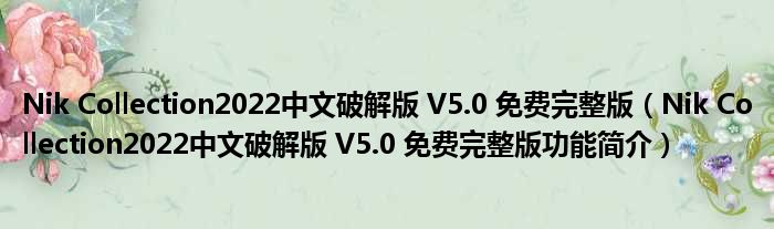 Nik Collection2022中文破解版 V5.0 免费完整版(Nik Collection2022中文破解版 V5.0 免费完整版功能简介)