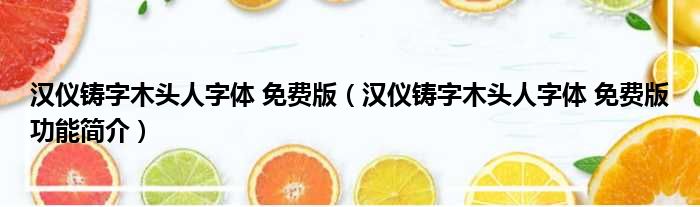 汉仪铸字木头人字体 免费版(汉仪铸字木头人字体 免费版功能简介)