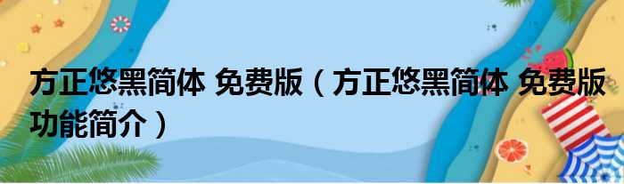 方正悠黑简体 免费版(方正悠黑简体 免费版功能简介)