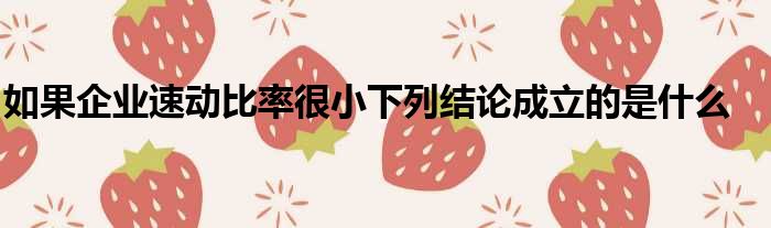 导读 大家好,今天小六子来为大家解答以下的问题,关于如果企业速动比率很小下列结论成立的是什么这个很多人还不知道,现在让我们一起来看看吧!1