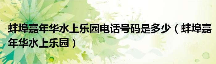蚌埠嘉年华水上乐园电话号码是多少(蚌埠嘉年华水上乐园)