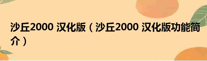 沙丘2000 汉化版(沙丘2000 汉化版功能简介)