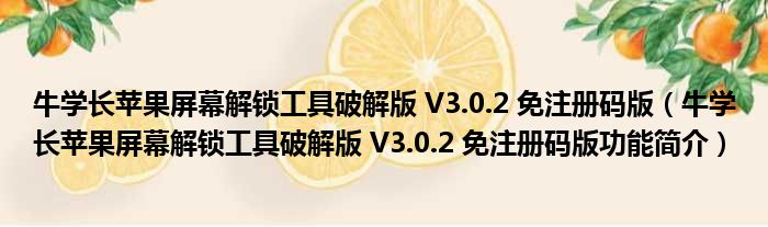 牛学长苹果屏幕解锁工具破解版 V3.0.2 免注册码版(牛学长苹果屏幕解锁工具破解版 V3.0.2 免注册码版功能简介)