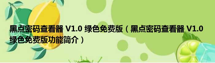 黑点密码查看器 V1.0 绿色免费版(黑点密码查看器 V1.0 绿色免费版功能简介)