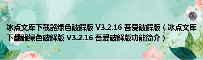 冰点文库下载器绿色破解版 V3.2.16 吾爱破解版(冰点文库下载器绿色破解版 V3.2.16 吾爱破解版功能简介)