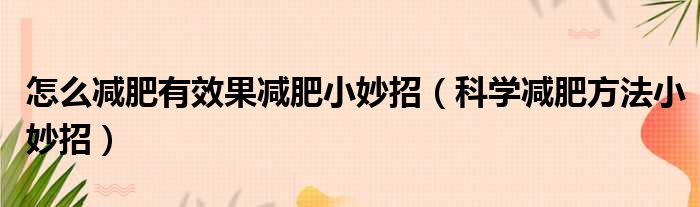 怎么减肥有效果减肥小妙招(科学减肥方法小妙招)