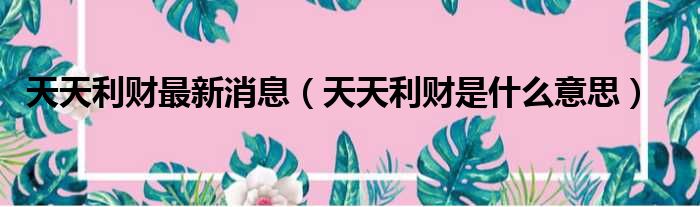 大家好,今天小六子来为大家解答以下的问题,关于天天利财最新消息,天天利财是什么意思这个很多人还不知道,现在让我们一起来看看吧!