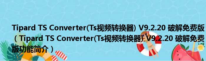 Tipard TS Converter(Ts视频转换器) V9.2.20 破解免费版(Tipard TS Converter(Ts视频转换器) V9.2.20 破解免费版功能简介)