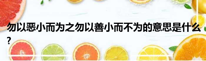 勿以恶小而为之勿以善小而不为的意思是什么?