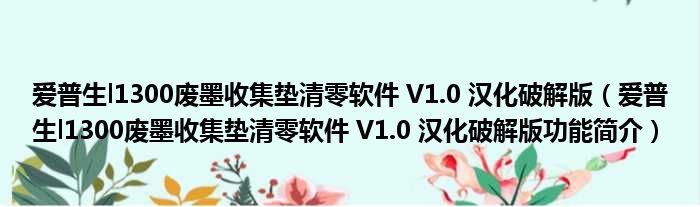 爱普生l1300废墨收集垫清零软件 V1.0 汉化破解版(爱普生l1300废墨收集垫清零软件 V1.0 汉化破解版功能简介)