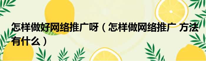 怎样做好网络推广呀(怎样做网络推广 方法有什么)