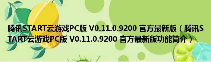腾讯START云游戏PC版 V0.11.0.9200 官方最新版(腾讯START云游戏PC版 V0.11.0.9200 官方最新版功能简介)